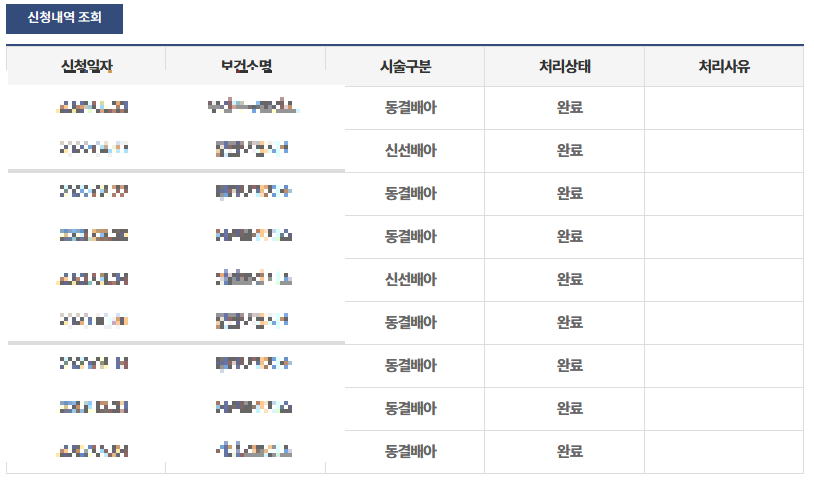 신청내역에서 아래 사진처럼 신청내역 조회를 먼저 합니다.