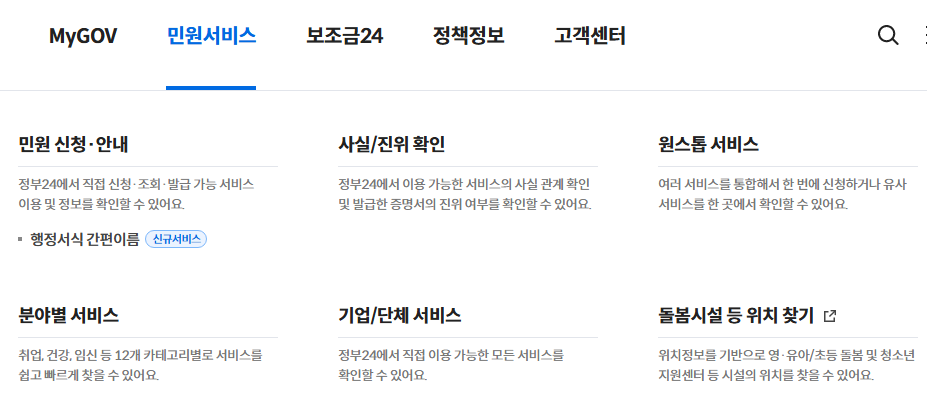 여기에서 이제 남편이름으로 정부 24 로그인 후 사실진위 확인으로 들어가서